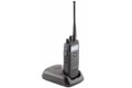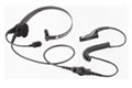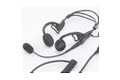 Fone de cabeça leve, ajustável, com uma almofada, microfone e interruptor PTT em linha. |