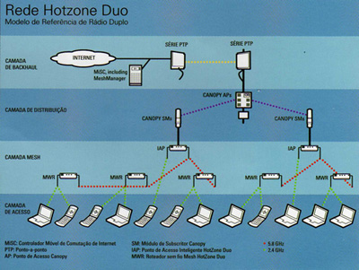 O design inovador de HotZone Duo lhe permite atualizar-se medida que se cresce. A solução possui dois rádios incorporados: um rádio em 2.4 GHz compatível com 802.11b/g e um rádio em 5.8 GHz compatível com 802.11a, podendo ser configurado como um número de rádio simples ou de rádio duplo. Os clientes podem escolher a configuração de rádio mais adequada para as suas necessidades. As redes HotZone Duo podem utilizar qualquer combinação de clusters de rádios simples ou duplos. A opção de rádio simples ideal para as implementações de redes onde a cobertura e o serviço de baixo custo são fundamentais. A configuração de rádio duplo confere melhor rendimento e maior capacidade de lidar com interferência, com uma latência menor do que a versão de rádio simples. Em ambas as configurações, HotZone Duo oferece serviços escaláveis e rentáveis de banda larga sem fios a usuários residenciais, empresariais e municipais.