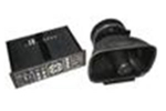 Conjunto sonofletor constituído por sirene eletrônica de 100W RMS, 06 tipos de sons e megafone. |