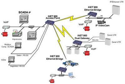 O Sistema Ponto-Multiponto Wireless IP/Ethernet é formado por rádios com tecnologia de espalhamento (Spread Spectrum), na faixa de 902 a 907,5 MHz e 915 a 928 MHz, utilizando a técnica de pulos de freqüências (Frequency Hopping).